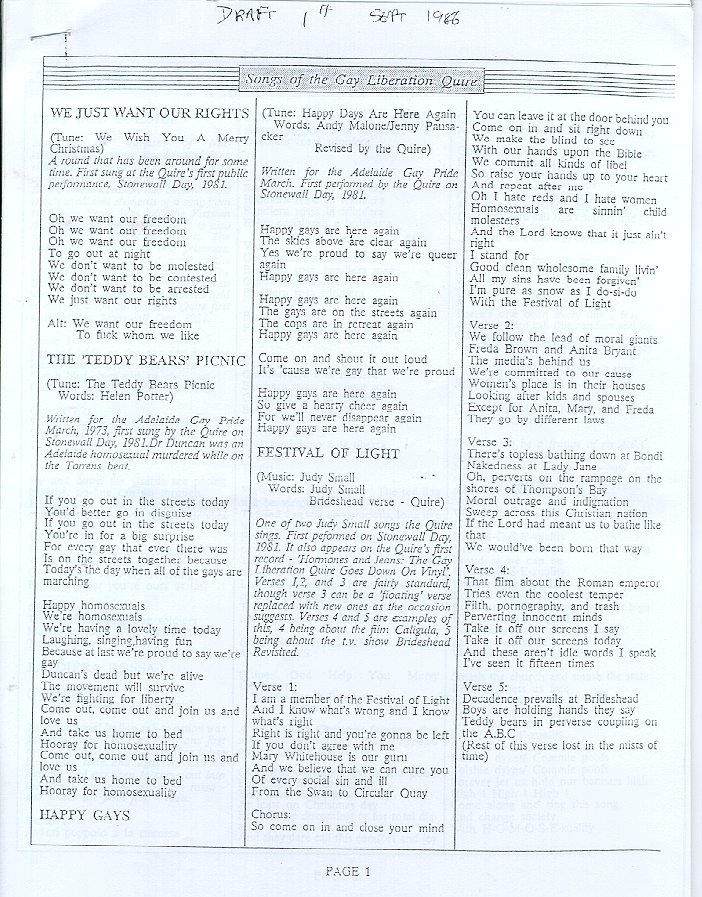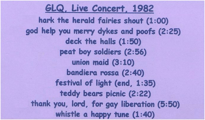 THE GLQ had a "Songbook"...the copy I have has 23 pages; here are the first four, which includes the two songs sung on my December show.