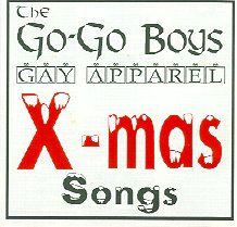 That was from Jan Barlow's cassette called "Dyke the Halls," and if you ever see a copy of that tape, grab it, as it's very rare. I had to borrow the version I have. The Go Go Boys are known for their graphic lyrics. On the cover of their second album is the tongue-in-cheek blurb "Due to the gratuitous use of foul language, thinly veiled sexual innuendo, and frank reference to various forms of male-on-male mutual gratification, this CD should not be purchased by anyone under 18 or be listened to in a car with the windows open." Their first album, from 1996, was called "Gay Apparel X-mas Songs" and from it here are three parodies. You'll recognize the tunes, but they called them "Harv & Harold," "Chicken Hawk Is Coming to Town," and "The Bottom Line." Go Go Boys - harv