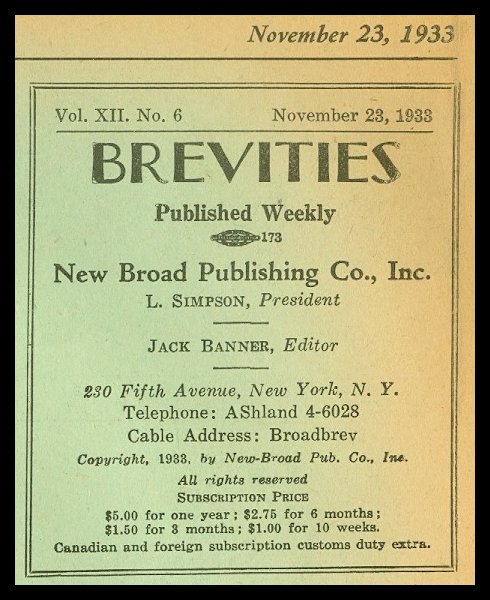 Broadway Tattler, January 1933