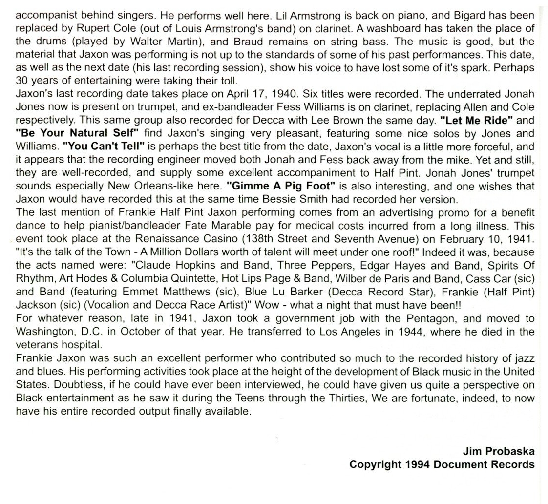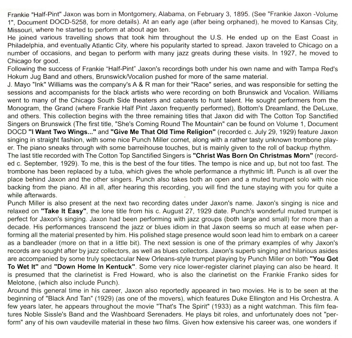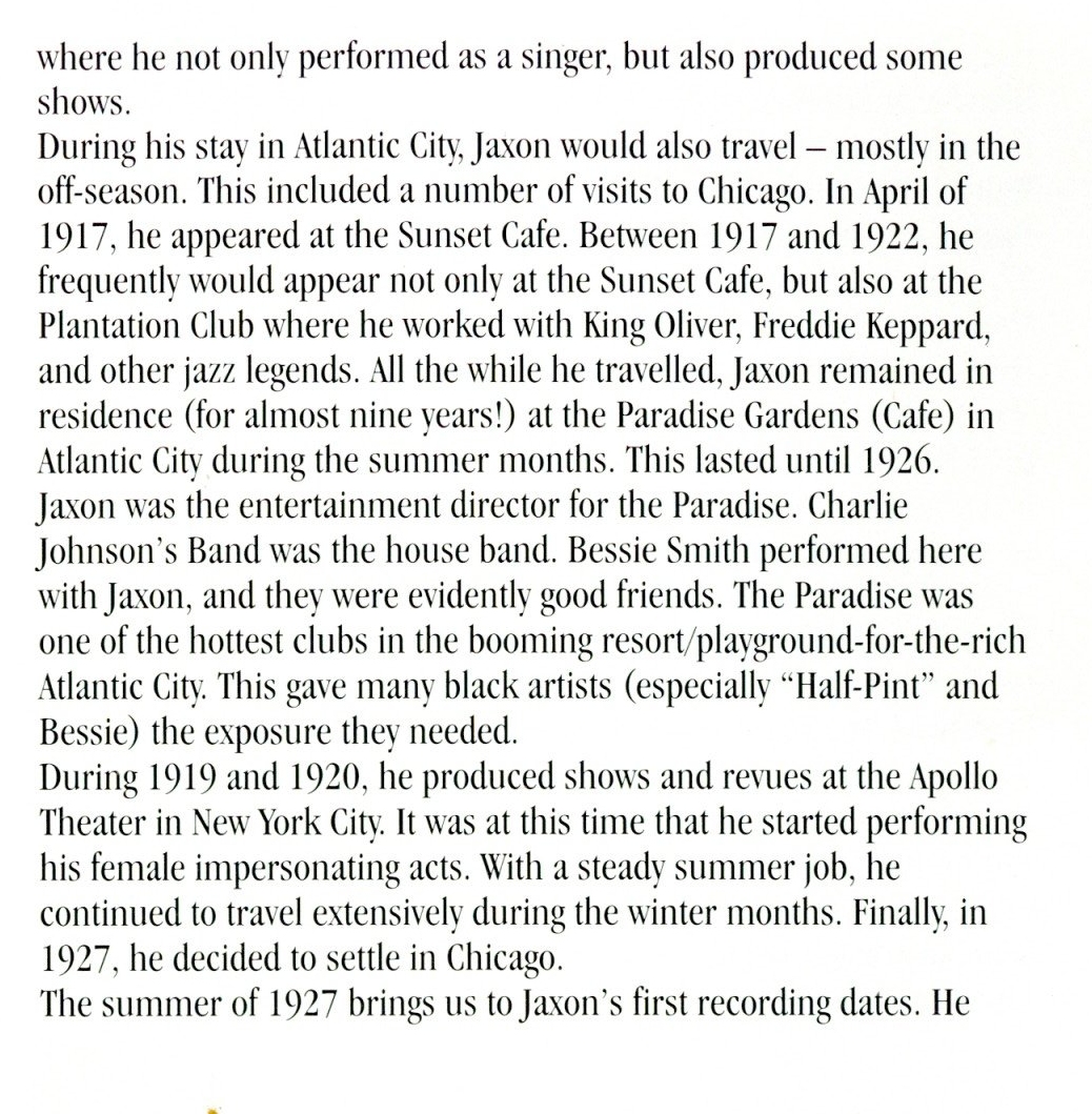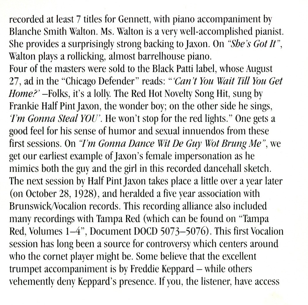 to Drag Artist Discography Frankie "Half-Pint" Jaxon Reissue CD's