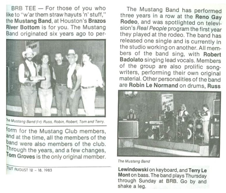 Mustang Band started in Houston in the late 1970's, as an offshoot