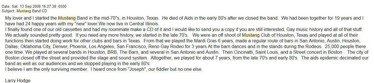 May 2022, got a message from Joseph Siegel, the band's fiddler, who commented on Larry's note: