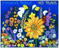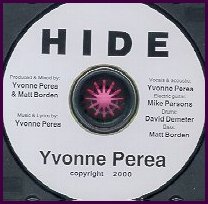 Above is Yvonne Perea's 1996 debut CD "Knowing This Path," followed in 2000 by "Tomorrow's Day," and the CD single of "Hide." Her latest CD "My Peace," (below left) is from June 2002. And in the center she's at the 2001 Houston Women's Festival