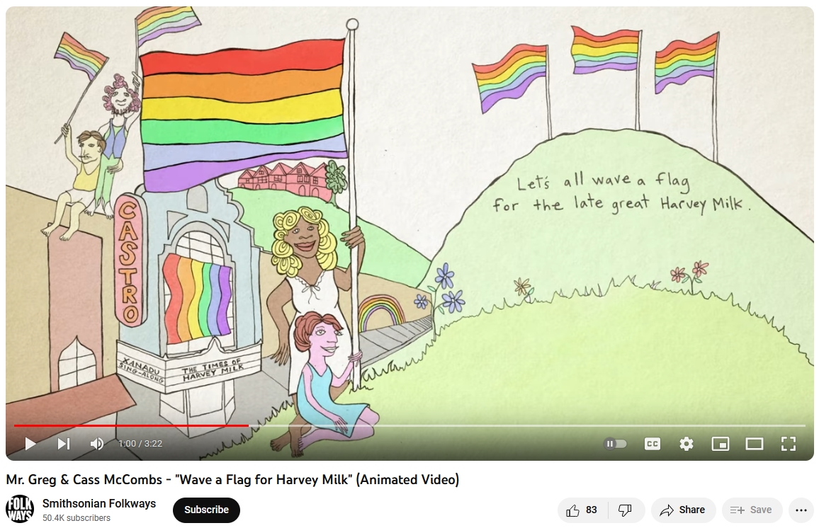 a Flag for Harvey Milk Watch the Official Video of Wave a Flag for Harvey Milk by Mr. Greg & Cass McCombs, featuring the San Francisco Gay Men's Chorus. This is the first single off their Smithsonian Folkways album Mr. Greg & Cass McCombs - Sing and Play New Folk Songs for Children. |