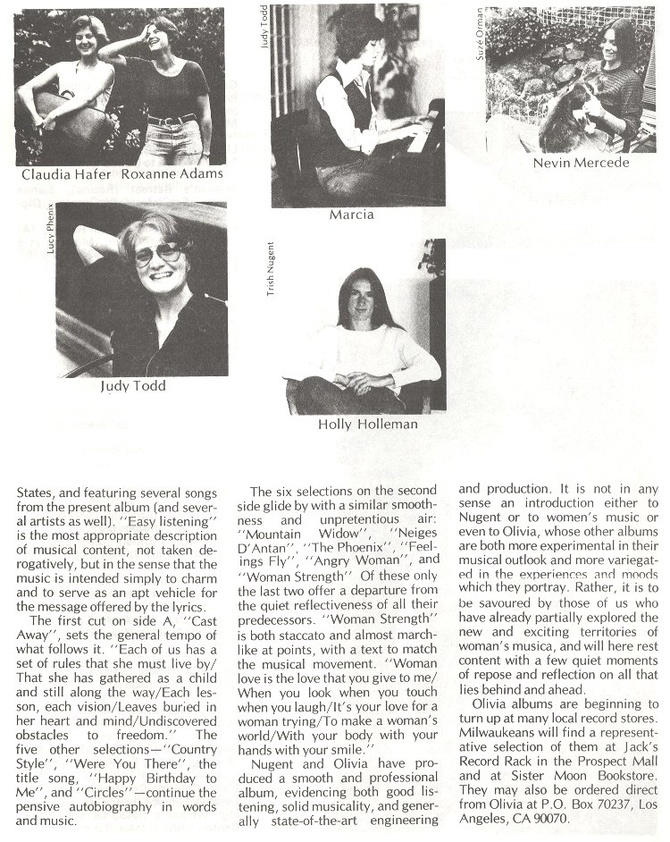 Distributed by Olivia Records